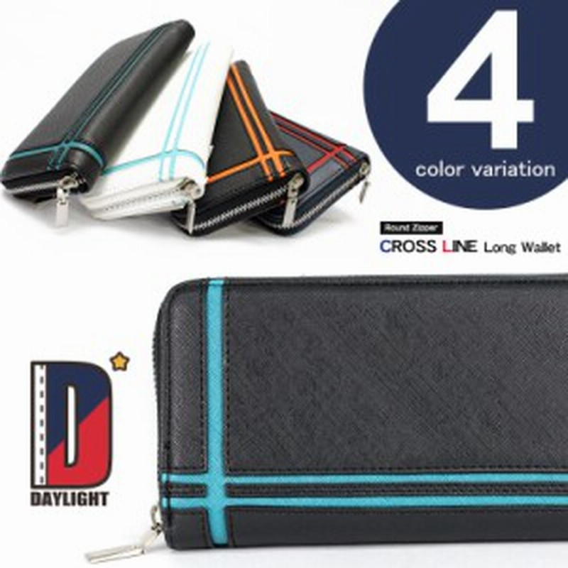 Daylight デイライト wラインで魅せるデザインウォレット 財布 メンズ 長財布 ウォレット ラウンドファスナー ブラック ネイビー ホワイト シンプル カラーライン Wライン 安い 人気 かっこいい カジュアル フォーマル おしゃれ デザイン 合成皮革 革 入学祝い ブランド