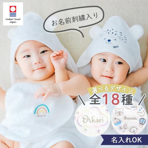 出産祝い Shirofuwaフード付き名入れ今治バスタオル おくるみ 今治タオルブランド 日本製